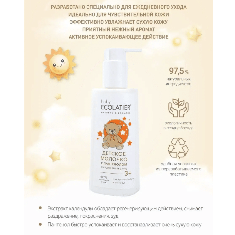 Детское Молочко с пантенолом Ежедневный уход ECOLATIER BABY