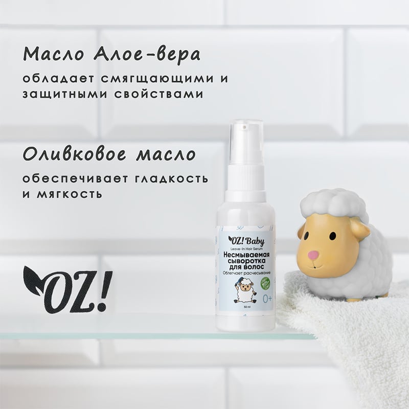 Несмываемая сыворотка для волос OZ! Baby придает волосам блеск.