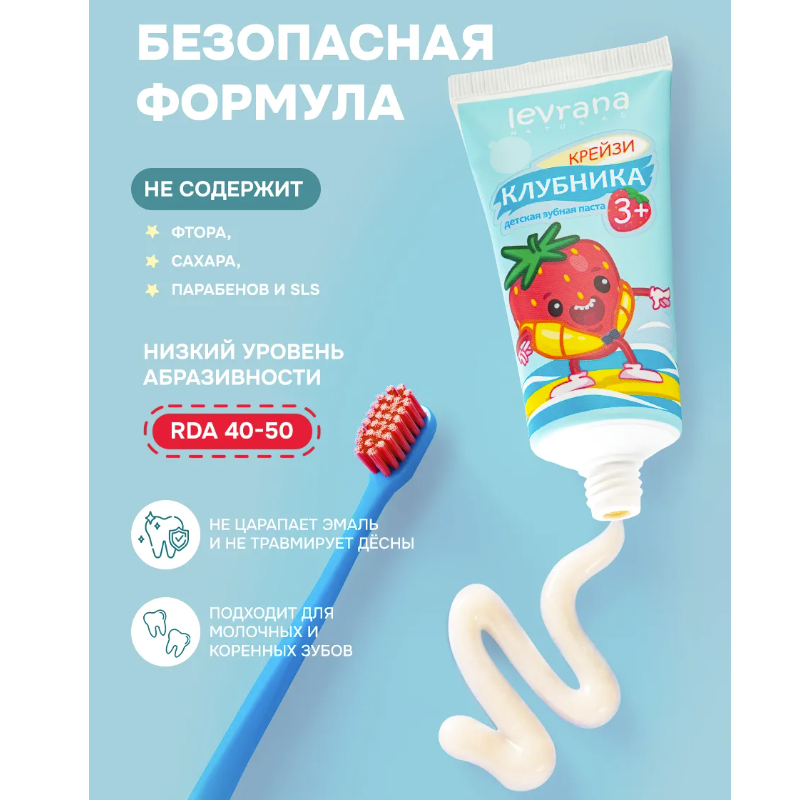 Детская зубная паста со вкусом клубники 3+ Levrana