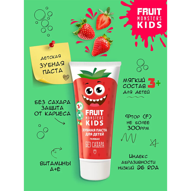 Фрутомонстры Зубная паста детская Клубника МЕГАМОНСТРЫ