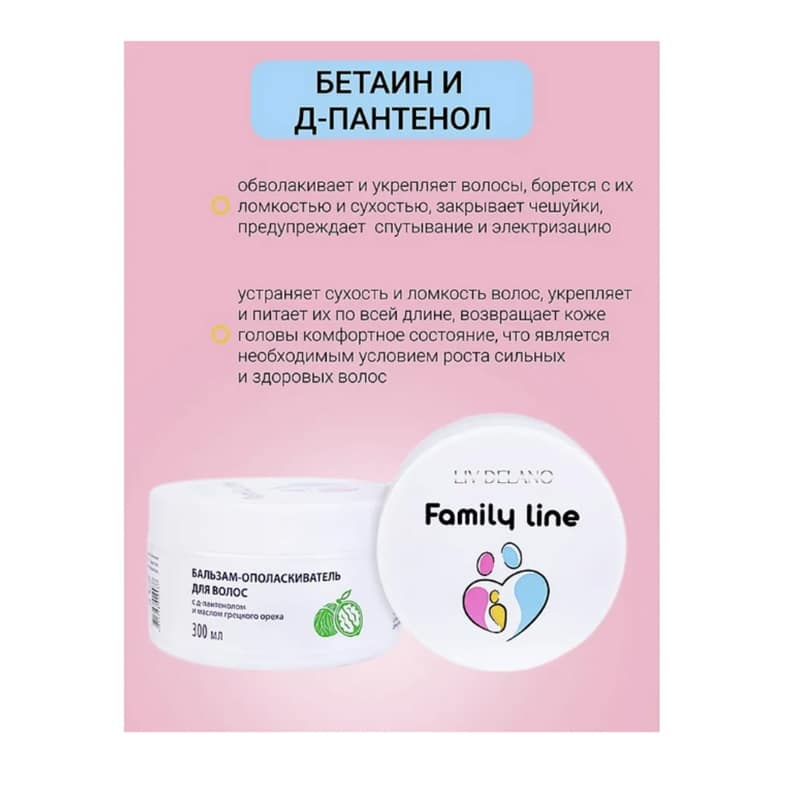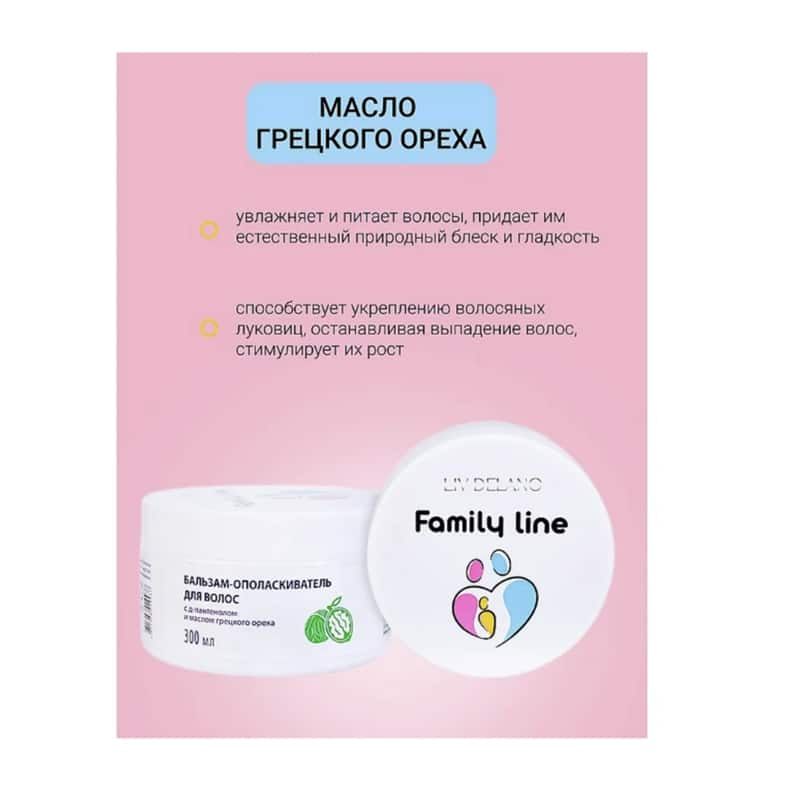 Бальзам-ополаскиватель для всех типов волос с д-пантенолом и маслом грецкого ореха Family line