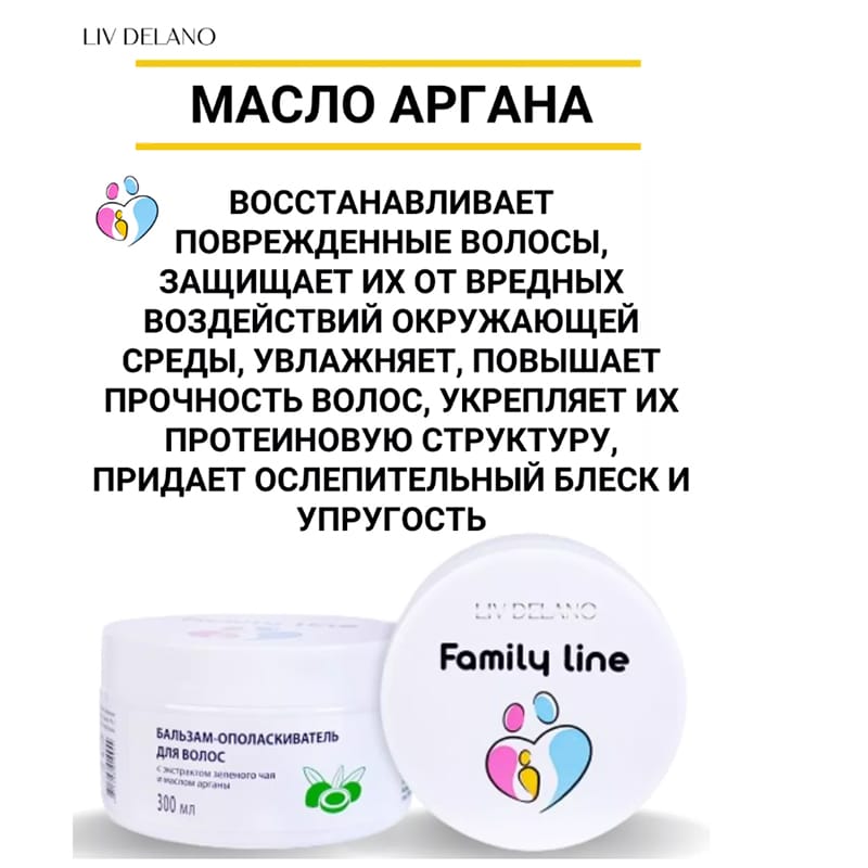 Бальзам-ополаскиватель для всех типов волос с экстрактом зеленого чая и маслом аргана Family line