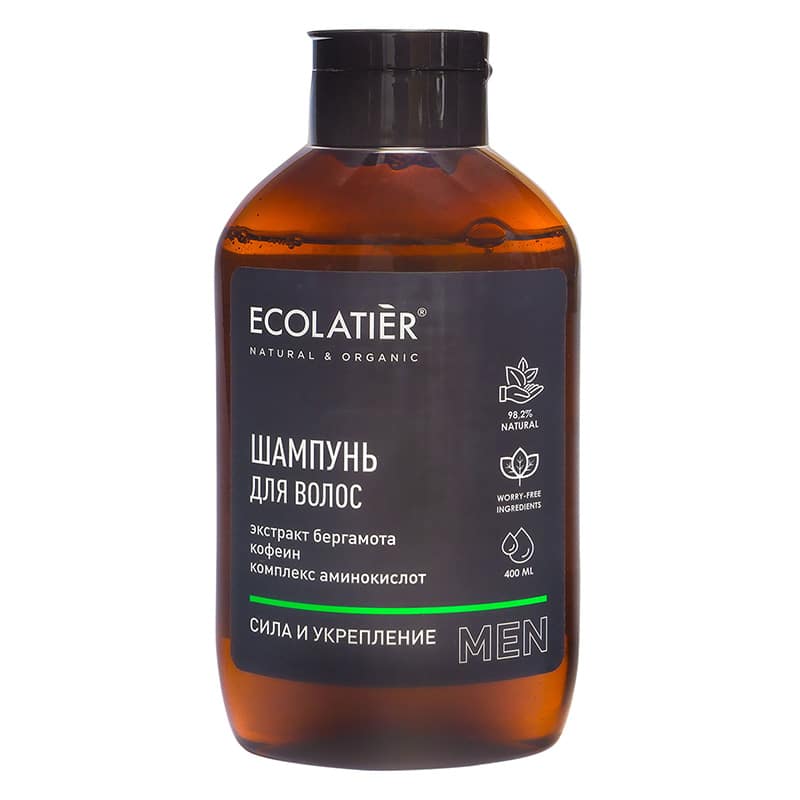 Шампунь Сила и укрепление ECOLATIER® MEN эффективно и бережно очищает волосы и кожу головы. Способствует укреплению волосяных луковиц, предотвращает ломкость и выпадение. Нормализует гидролипидный баланс кожи головы, делает волосы более сильными и густыми, ухаживает за ними и защищает от воздействия негативных факторов окружающей среды.