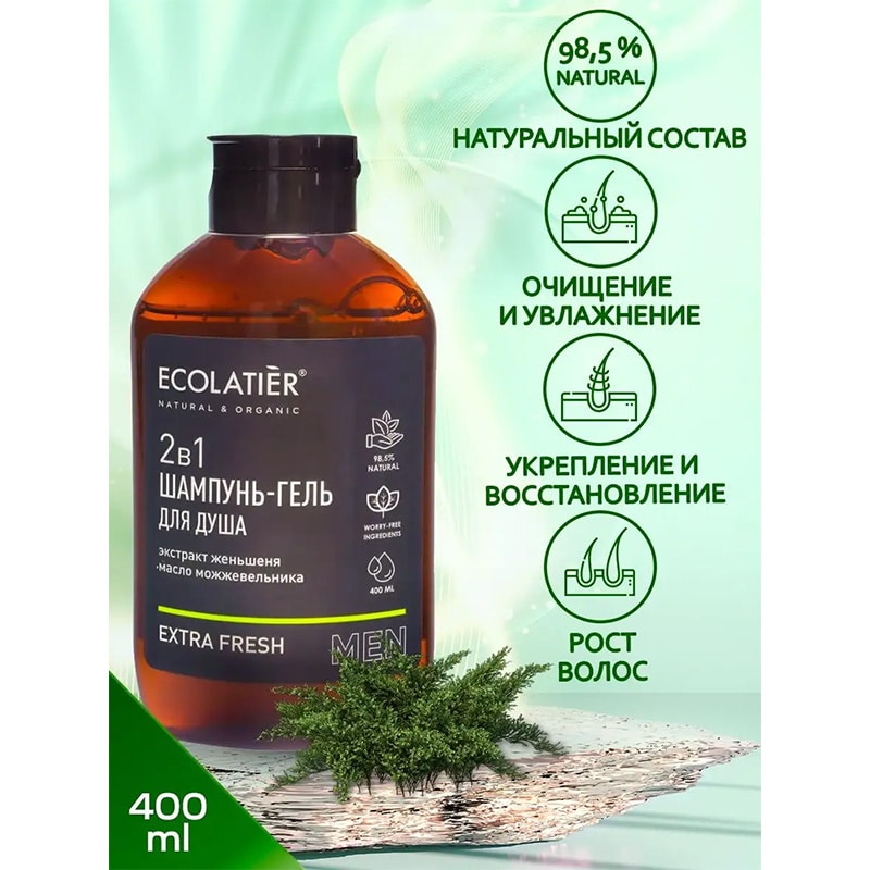 Шампунь и гель для душа 2 в 1 Extra Fresh ECOLATIER® MEN — идеальное средство для эффективного очищения волос и тела. Обладает увлажняющим, смягчающим и тонизирующим действием на кожу, хорошо пенится и легко смывается. Дарит заряд бодрости и энергии на весь день.