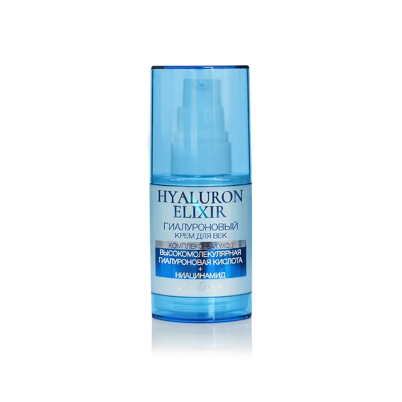 Крем для век антивозрастной Hyaluron Elixir гиалуроновый от морщин и темных кругов под глазами от белорусского бренда уходовой косметики Liv Delano — эффективное средство для ухода за нежной кожей век. Комплекс активных компонентов, входящий в состав крема для век (масло макадамии, гиалуроновая кислота, масло авокадо, кофеин, бетаин, ниацинамид)придаёт коже эластичность, упругость и тонус, возвращая взгляду красоту и выразительность. Гиалуроновая кислота благодаря низкой молекулярной массе имеет высокую проникающую способность, а потому проявляет лучший увлажняющий эффект, заметный сразу же после применения. Стимулирует синтез протеинов плотных соединений, в результате улучшается сцепление клеток, а это предупреждает транс-эпидермальную потерю влаги. Активно стимулирует синтез проколлагена I, в результате повышается тонус и упругость кожи.