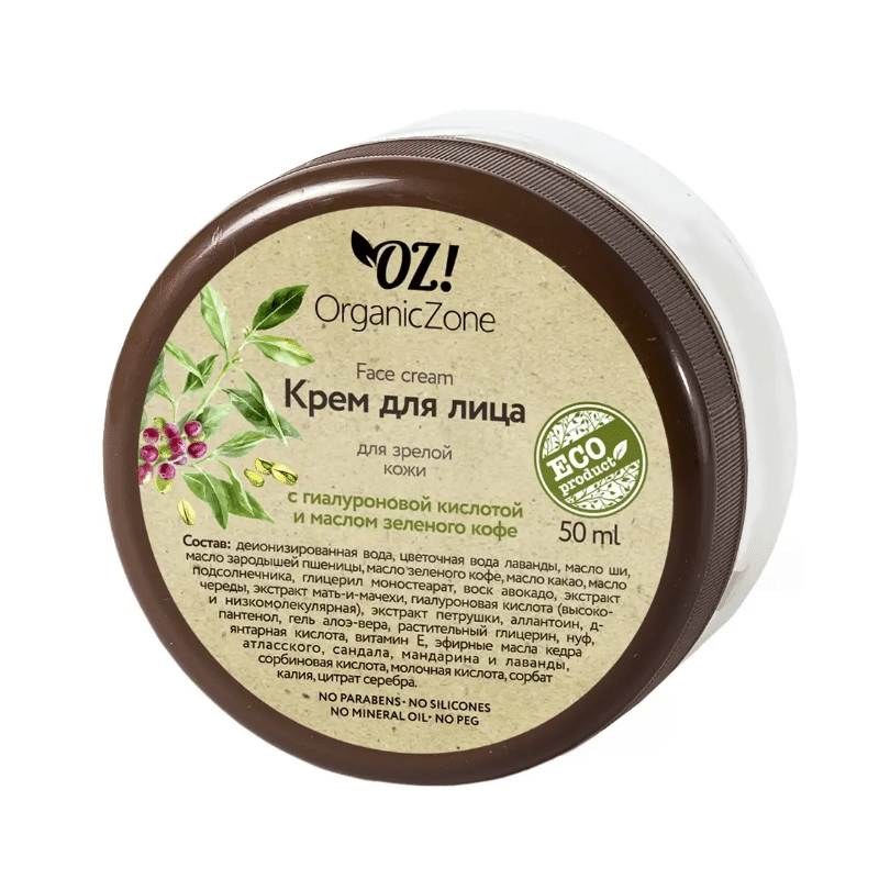 Крем для лица для зрелой кожи с гиалуроновой кислотой и маслом зеленого кофе OZ! Organic Zone