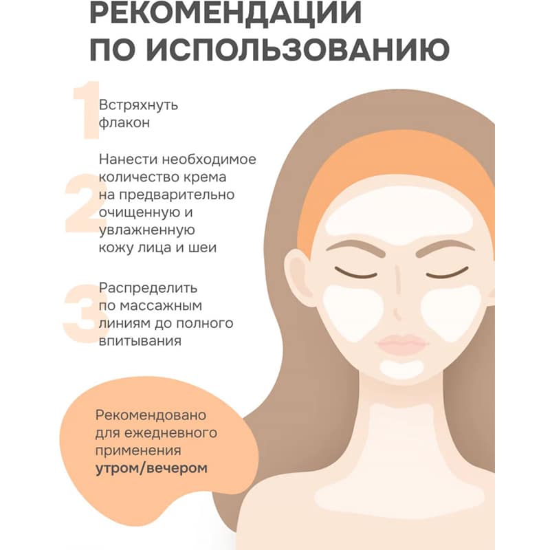 Способ применения: Встряхнуть флакон. Нанести необходимое количество крема на предварительно очищенную и увлажненную кожу лица и шеи. Распределить по массажным линиям до полного впитывания.Особенно подходит для проблемной, обезвоженной и поврежденной кожи.Подходит для ежедневного применения утром/вечером.