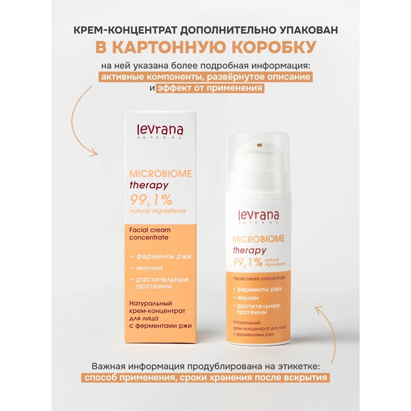 Крем-концентрат для лица с ферментами ржи Восстановление микробиома Levrana