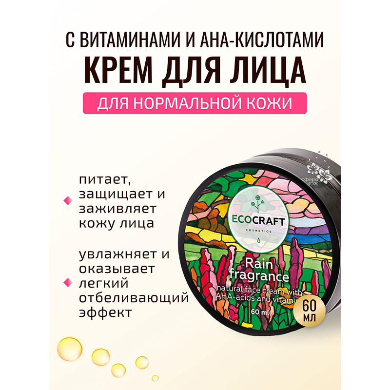 Натуральный крем для лица с АНА-кислотами и витаминами для нормальной кожи Аромат дождя ECOCRAFT