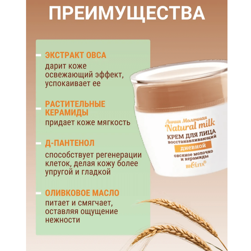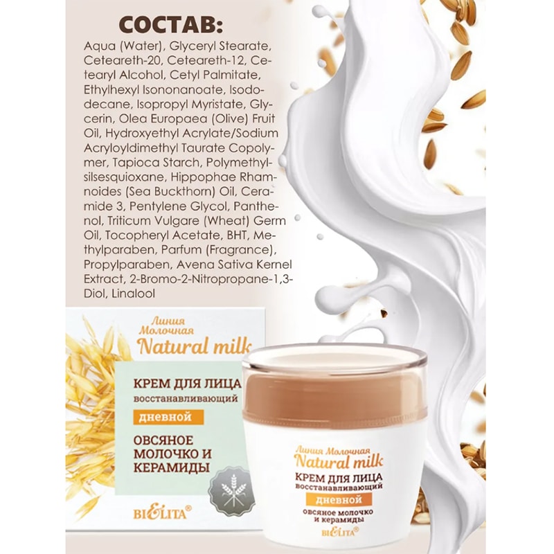 Крем для лица восстанавливающий дневной Овсяное молочко и керамиды. Молочная. Natural milk