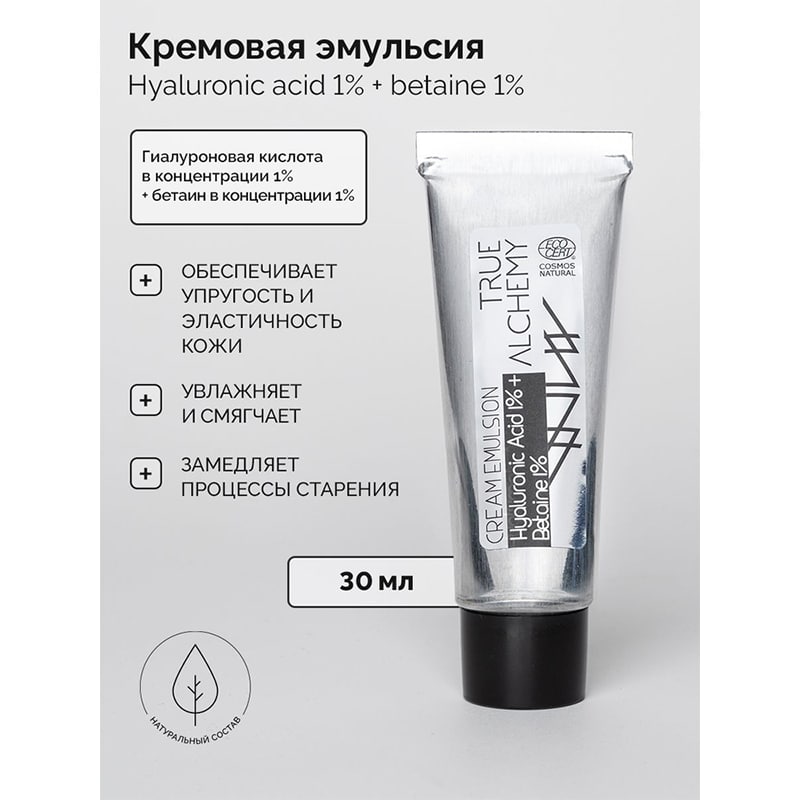 Кремовая эмульсия Hyaluronic Acid 1% + Betaine 1% ECOCERT True Alchemy