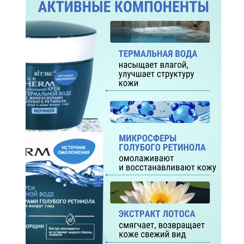 РОСКОШНЫЙ КРЕМ на термальной воде с микросферами голубого ретинола для лица и кожи вокруг глаз НОЧНОЙ BLUE THERM