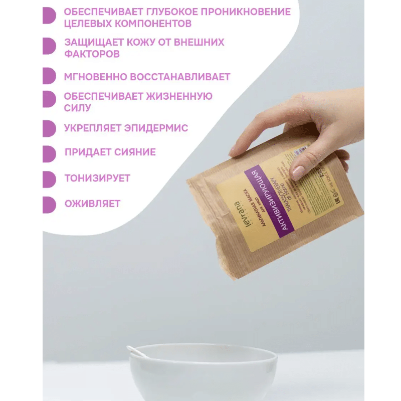 Альгинатная маска, за счет своей текстуры и плотности, обеспечивает глубокое проникновение целевых компонентов — эфирных масел, экстрактов и витаминов. Мгновенно восстанавливает и оживляет, защищая кожу от внешних факторов. Отлично тонизирует и укрепляет эпидермис. Придает сияние и обеспечивает жизненную силу.