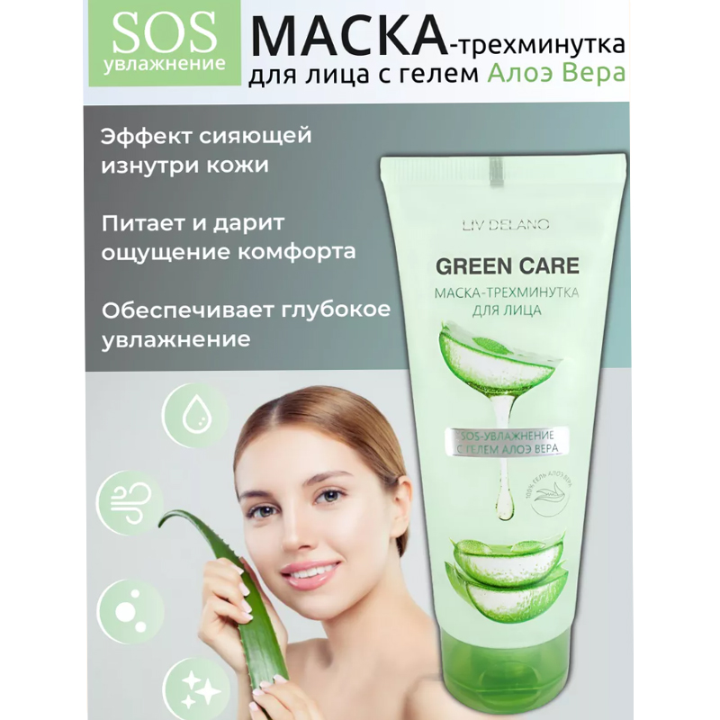 Маска трехминутка для лица SOS увлажнение с гелем Алоэ Вера Green Care