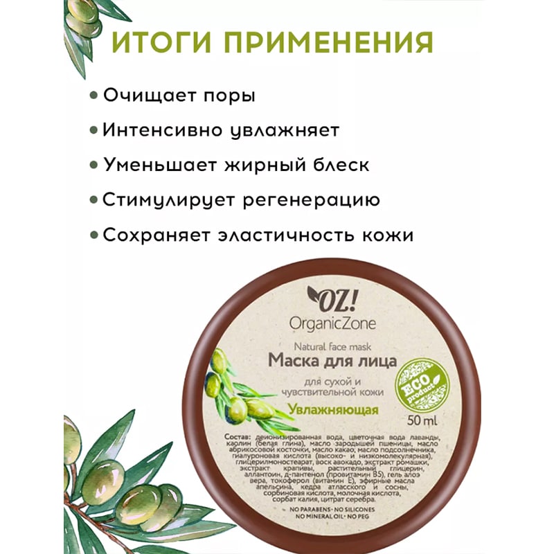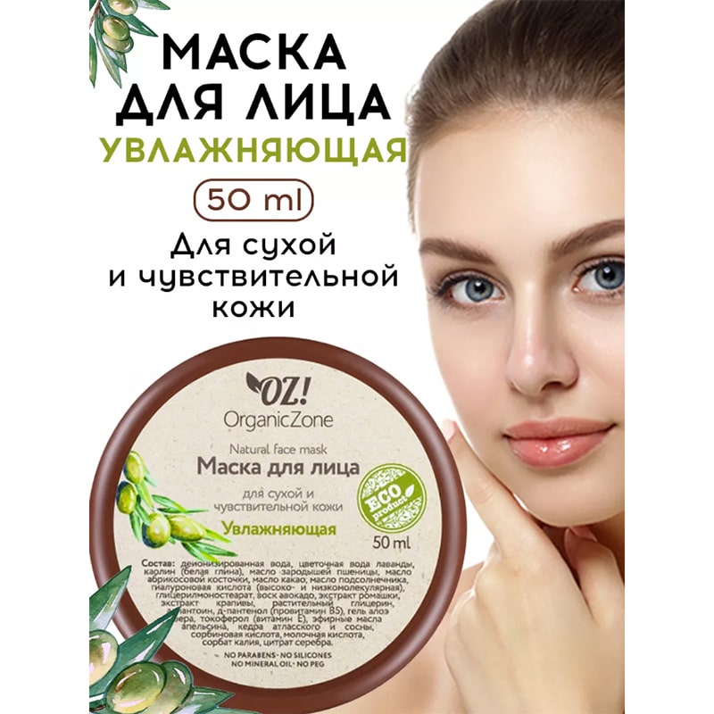 Маска для лица для сухой и чувствительной кожи Увлажняющая OZ! OrganicZone
