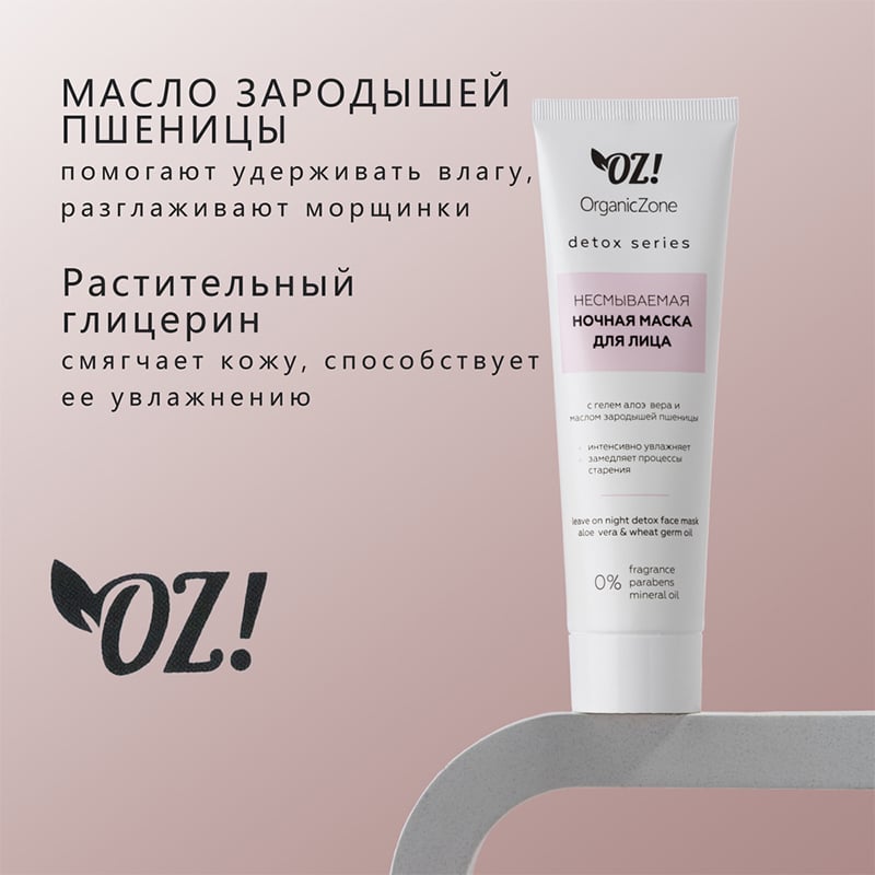 Маска для лица OZ! Detox series несмываемая ночная с гелем алоэ вера и маслом зародышей пшеницы