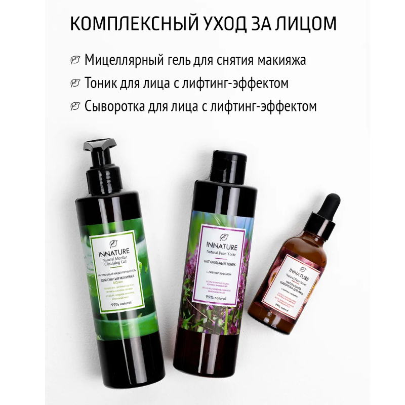 Подарочный Набор Натуральный мицеллярный гель, тоник и сыворотка с лифтинг-эффектом Innature