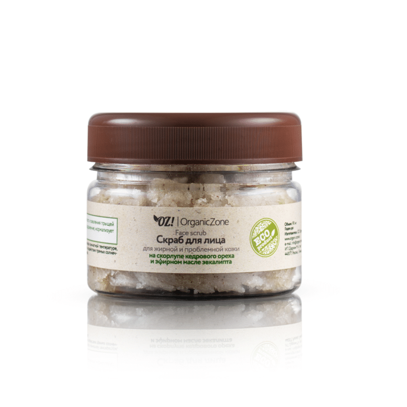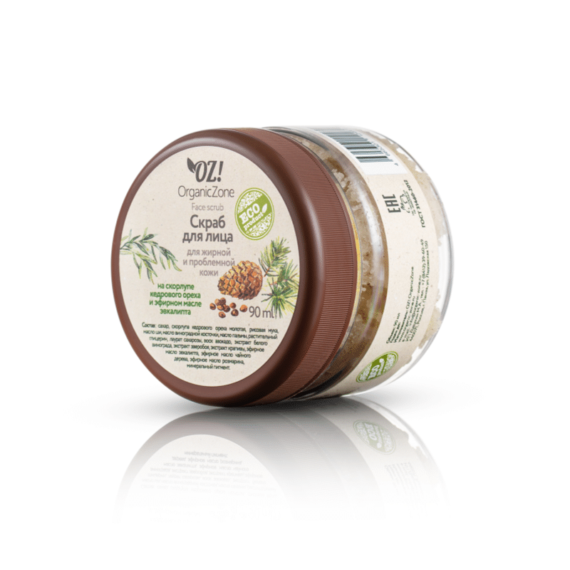 Скорлупа кедрового ореха очищает поры, снижает вероятность появления прыщей и угрей. Эфирное масло эвкалипта сужает поры, снимает раздражение, нормализует работу сальных желез.