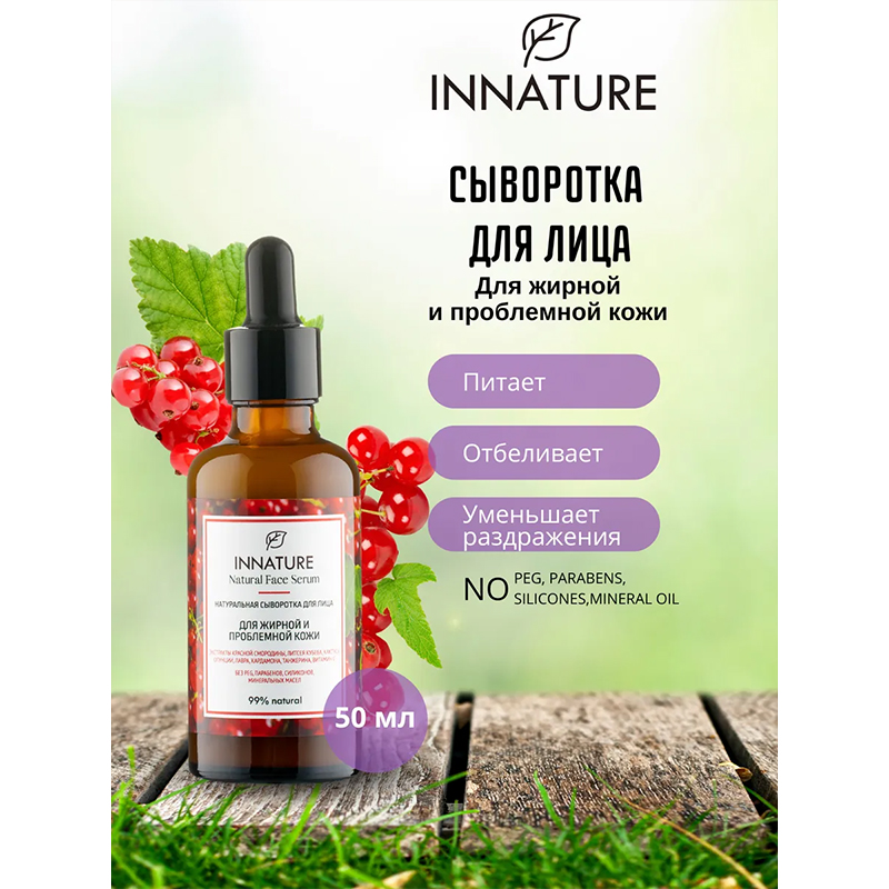 Натуральная сыворотка для лица для жирной и проблемной кожи Innature