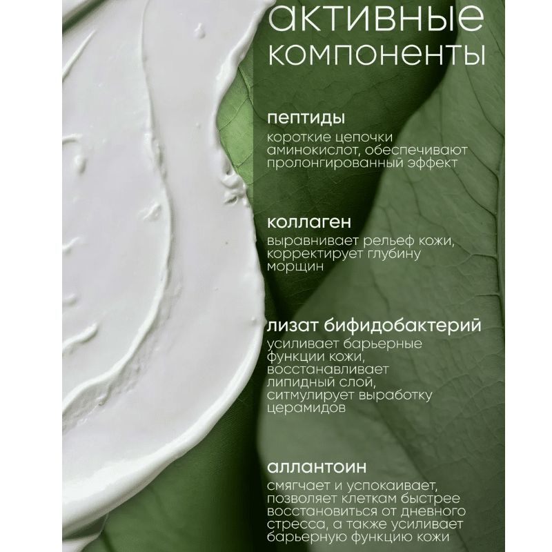 Water, bifida ferment filtrate (лизат бифидобактерий), butylene glycol, dipropylene glycol, glycereth-26, glycerin, methyl gluceth-20, hydroxyacetophenone, 1,2-hexanediol, cetearyl olivate, sorbitan olivate, allantoin (аллантоин), carbomer, tromethamine, pentylene glycol, sodium hyaluronate (гиалуроновая кислота), tremella fuciformis sporocarp extract, avena sativa (oat) kernel extract (экстракт овса), caramel, hydrolyzed collagen, collagen extract (коллаген), saccharide hydrolysate, parfum, caprylyl glycol, propanediol, avena sativa (oat) peptide (растительные пептиды овса), sparassis crispa extract (экстракт спарассиса), caprylhydroxamic acid, sodium lactate, sodium chloride, acetyl hexapeptide-8, dipeptide diaminobutyroyl benzylamide diacetate, decapeptide-4, palmitoyl tripeptide-1, palmitoyl tetrapeptide-7 (комплекс пептидов), polysorbate 20, disodium phosphate, glycoproteins, ethylhexylglycerin.
