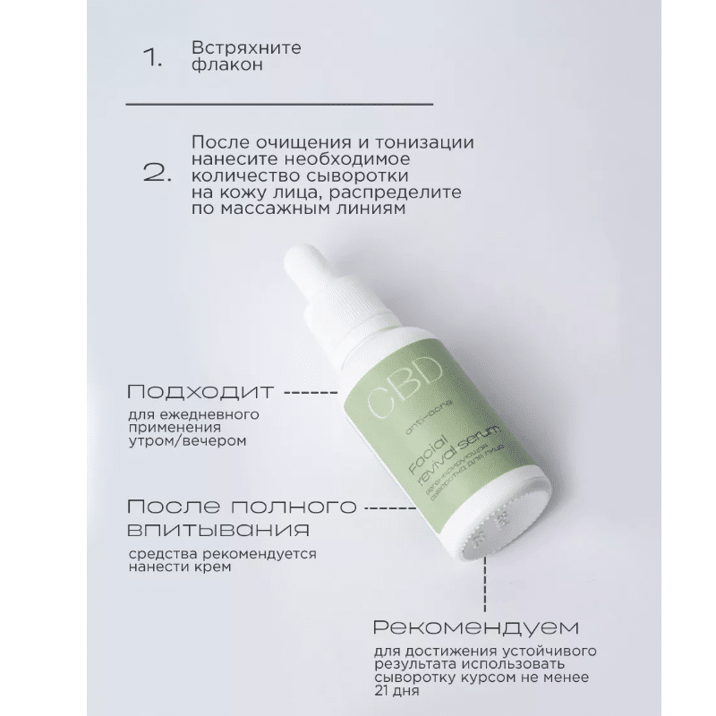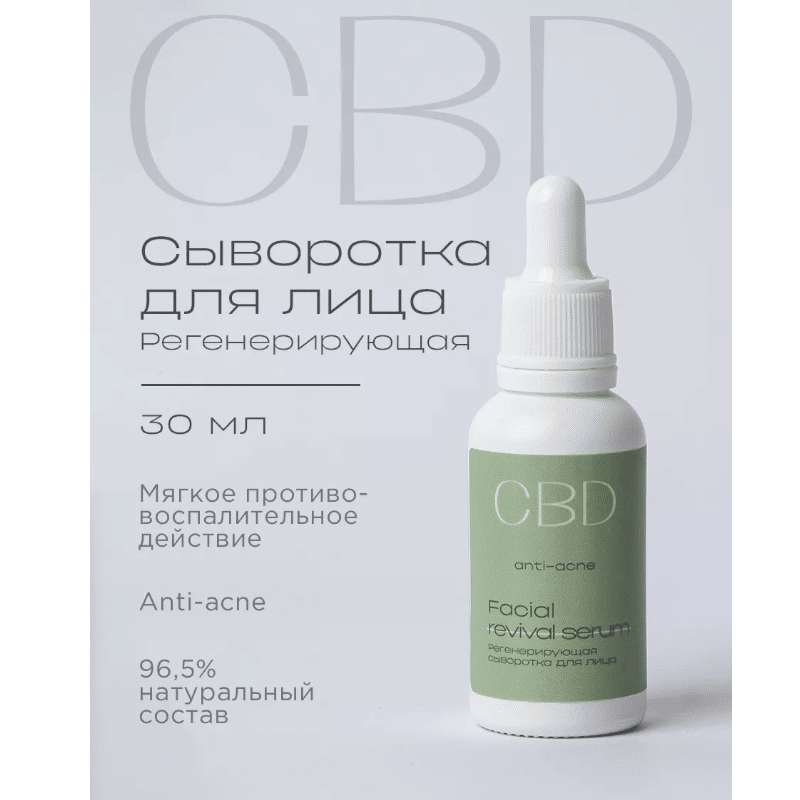 Активная регенерирующая сыворотка с каннабидиолом оказывает мягкое противовоспалительное и успокаивающее действие, уменьшает образование комедонов. CBD способен снимать кожное воспаление, подавляя выработку цитокинов. В синергии с витамином В3 проявляет активные регенерирующие свойства, повышает плотность и эластичность кожи, уменьшает активность сальных желез.