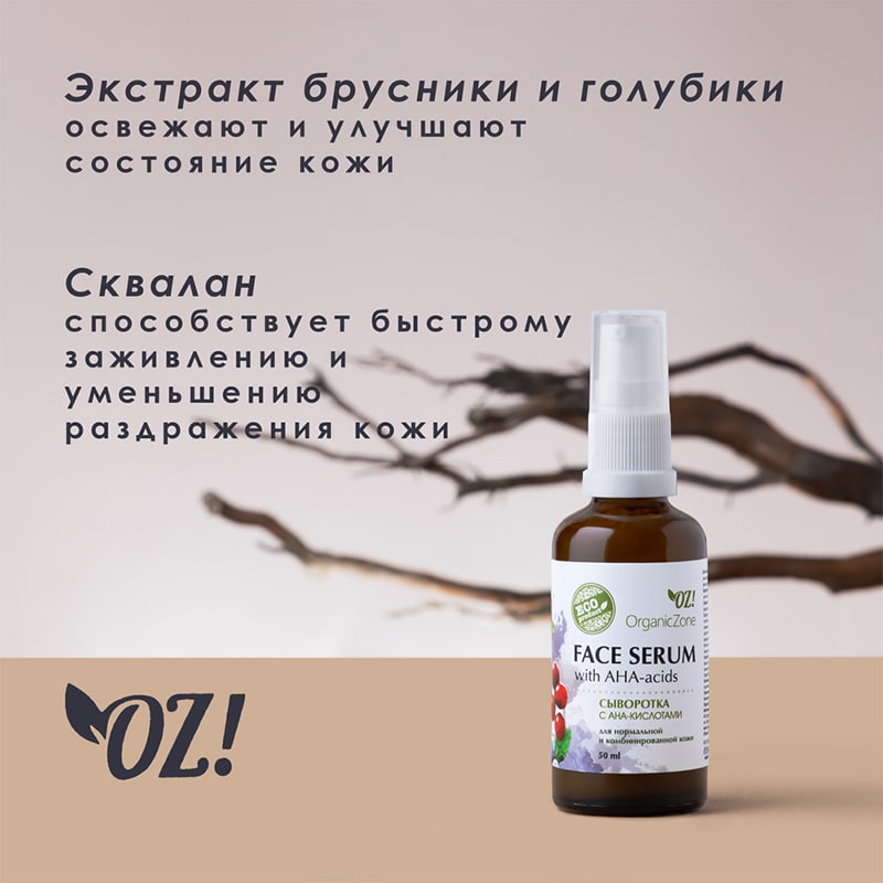 Сыворотка для лица с АНА-кислотами для нормальной и комбинированной кожи OZ! OrganicZone