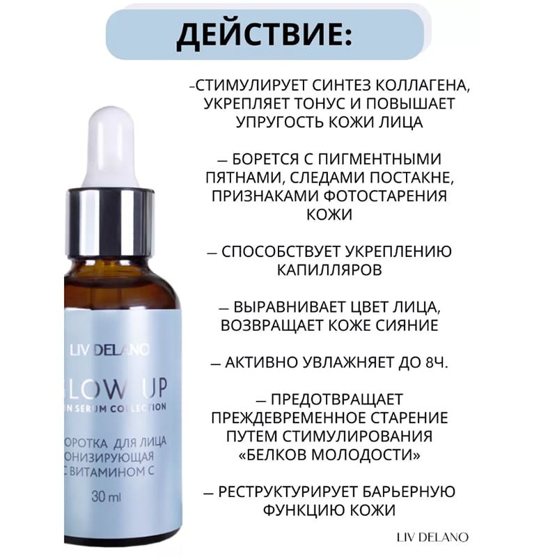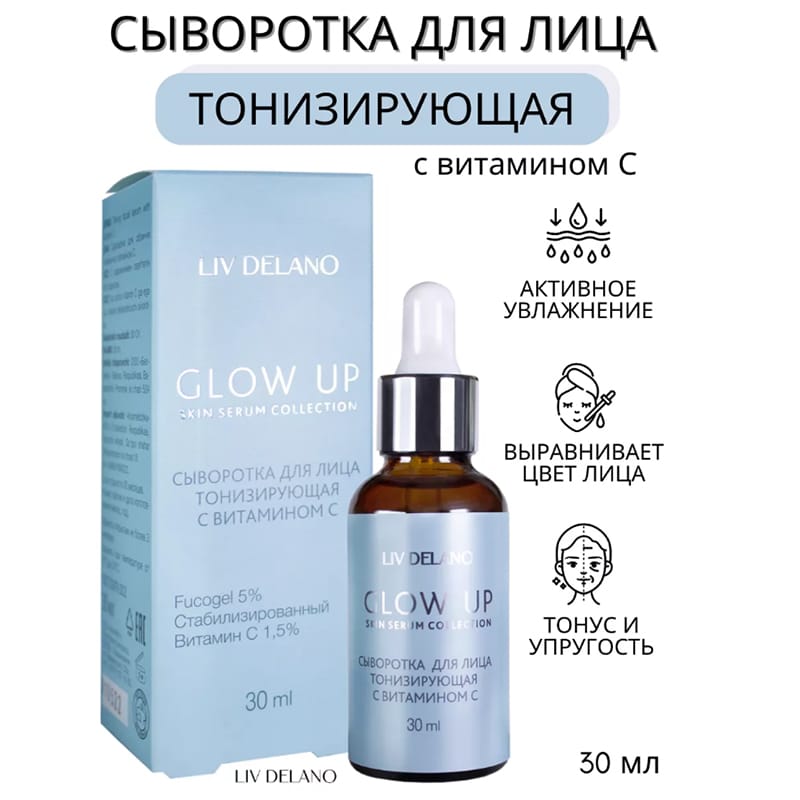 *Для более выраженного эффекта рекомендуем использовать данную сыворотку в сочетании с маской для лица тонизирующей с витамином С серии GLOW UP.