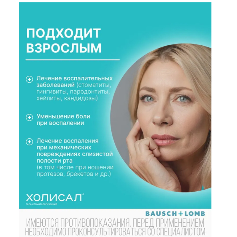 Препарат Холисал® показан для местного применения на слизистые оболочки полости рта в качестве обезболивающего и противовоспалительного средства при лечении заболеваний пародонта, повреждений слизистой оболочки полости рта, заболеваний протекающих с воспалительной реакцией и болью, в том числе: