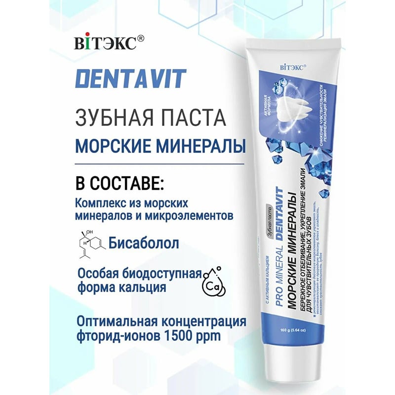 Зубная паста МОРСКИЕ МИНЕРАЛЫ Бережное отбеливание, укрепление эмали для чувствительных зубов Dentavit