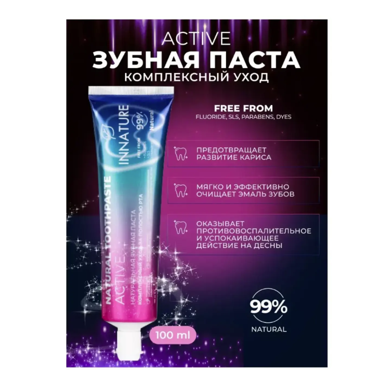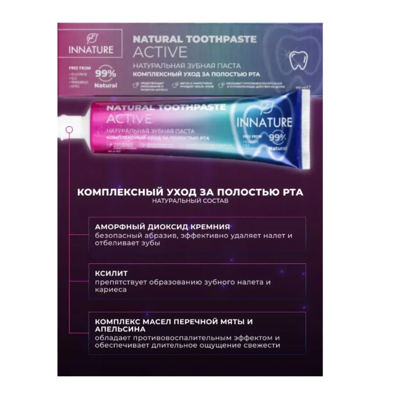 Натуральная зубная паста ACTIVE Комплексный уход за полостью рта Innature