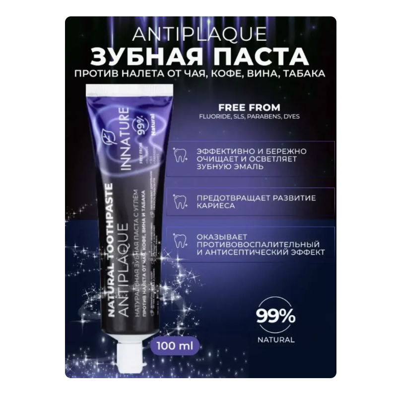 Зубная паста Antiplaque Против налета от чая кофе вина и табака натуральная Innature