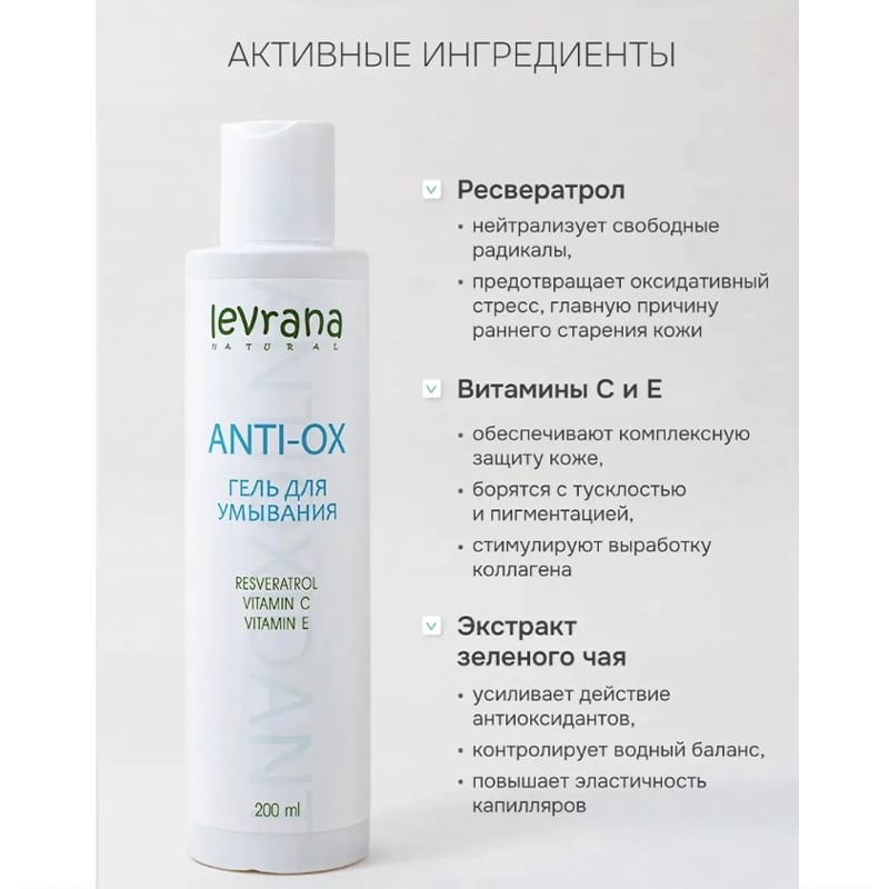 Гель для умывания Anti-ox COSMOS ORGANIC Levrana
