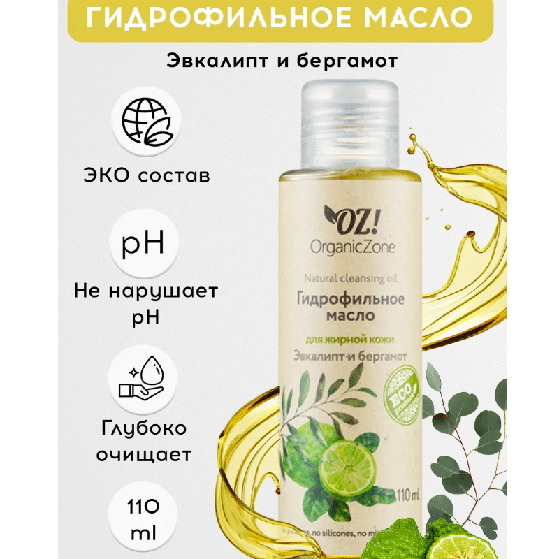Гидрофильное масло для жирной кожи Эвкалипт и бергамот OZ! OrganicZone