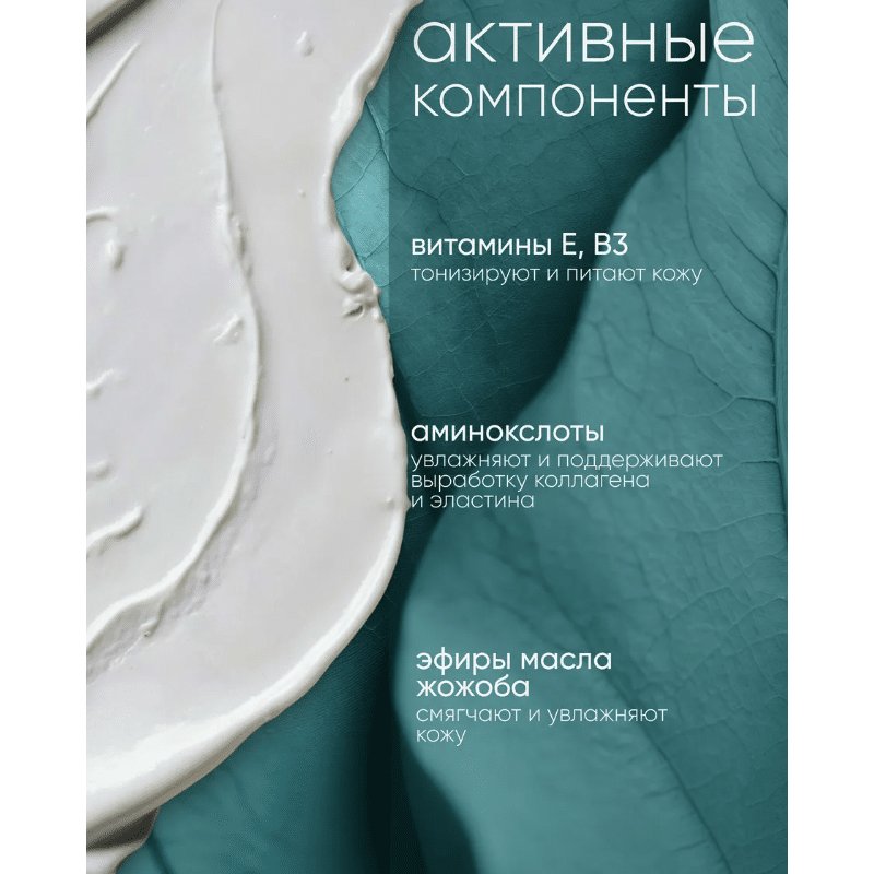 Витамины Е, B3 – тонизируют и питают кожу. Аминокислоты – увлажняют и поддерживают выработку коллагена и эластина. Эфиры масла Жожоба – смягчают и увлажняют кожу.