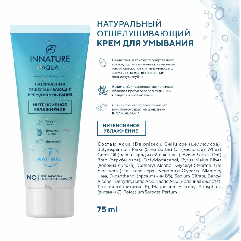 Крем для умывания отшелушивающий Интенсивное увлажнение AQUA Innature