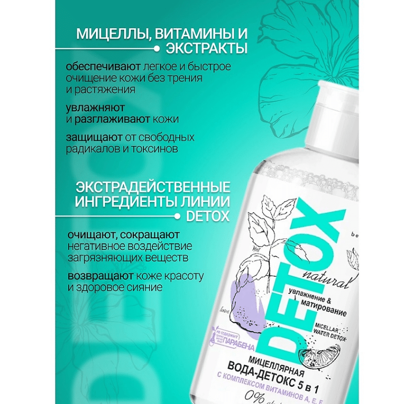 Мицеллярная вода-детокс 5 в 1 Легкое снятие макияжа для лица, глаз и губ · оптимальный уровень pH