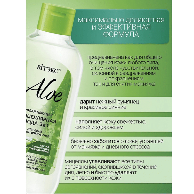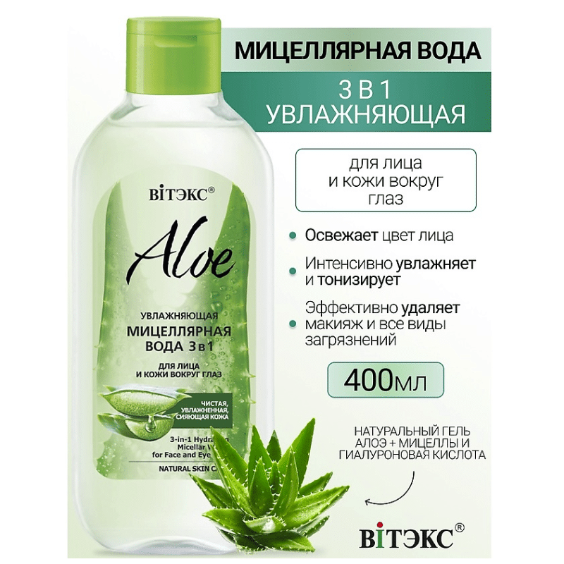 Увлажняющая МИЦЕЛЛЯРНАЯ ВОДА 3 в 1 для лица и кожи вокруг глаз ALOE 97%