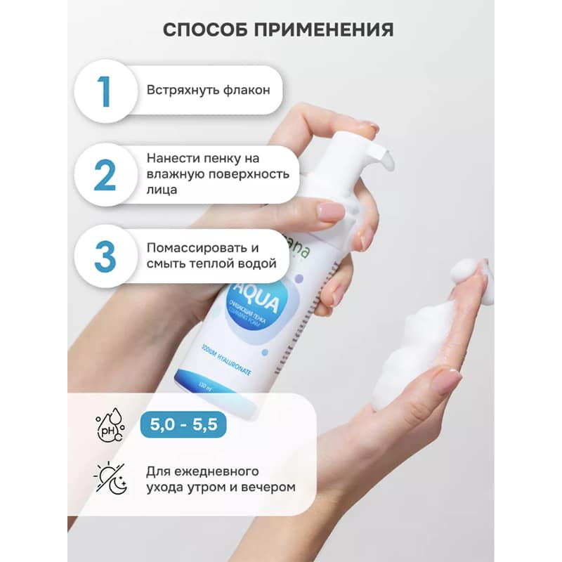 Пенка для умывания AQUA с гиалуроновой кислотой ECOCERT Levrana
