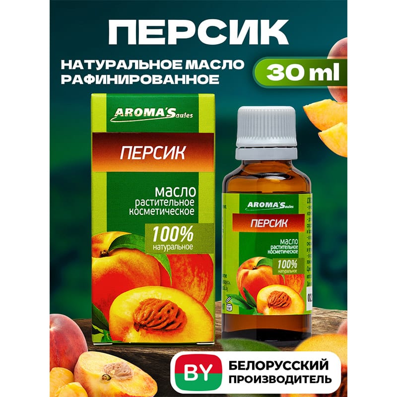 Натуральное масло персика (Prunus Persica). Не содержит красителей, ароматизаторов и консервантов.