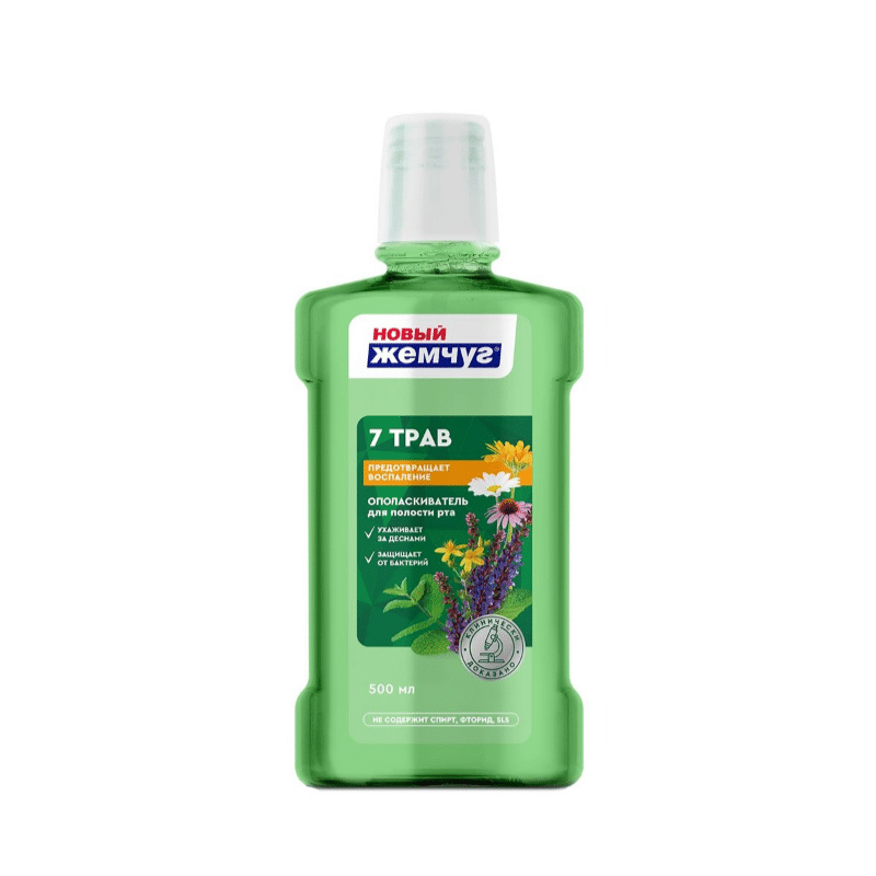 Экстракт семи лекарственных трав представляет собой комплекс растительных экстрактов из эхинацеи, перечной мяты, жгучей крапивы, зверобоя, календулы, шалфея и ромашки. Он оздоравливает ткани пародонта, обеспечивает профилактику кровоточивости десен, обладает противовоспалительным действием.