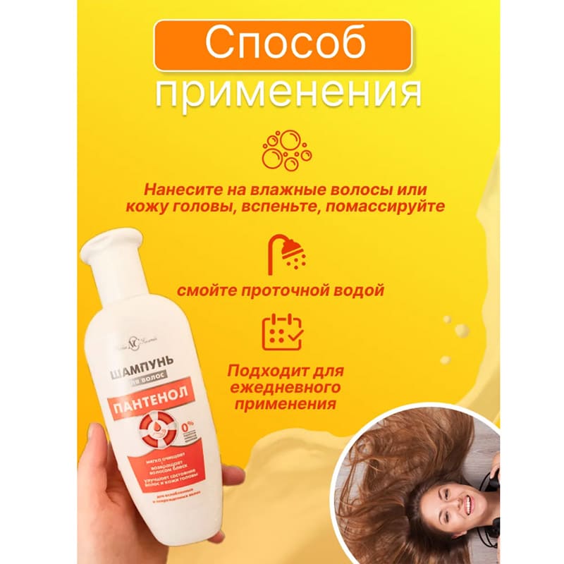 Для достижения наилучшего результата рекомендуем использовать шампунь в комплексе с бальзам-маской для волос «Невская Косметика Пантенол».