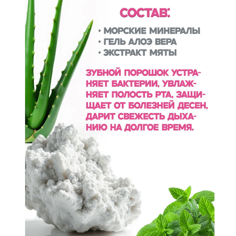 Зубной порошок в готовом виде – инновационный прорыв в сфере ухода за зубами! Уникальная рецептура порошка имеет нежную, сбалансированную консистенцию и позволят профессионально и безопасно отбелить зубы на 2 тона за две недели ежедневного применения. Зубной порошок бережно полирует и осветляет эмаль, удаляет налет от чая, кофе и табака, укрепляет зубы и десны, препятствует образованию зубного камня. Входящие в состав натуральный сок лимона, морская соль, масло апельсина и экстракт мяты обладают мощным антибактериальным действием, надежно защищают от кариеса и болезней десен, надолго освежают дыхание.