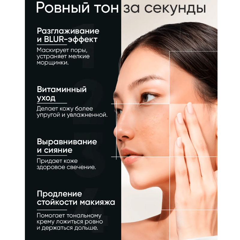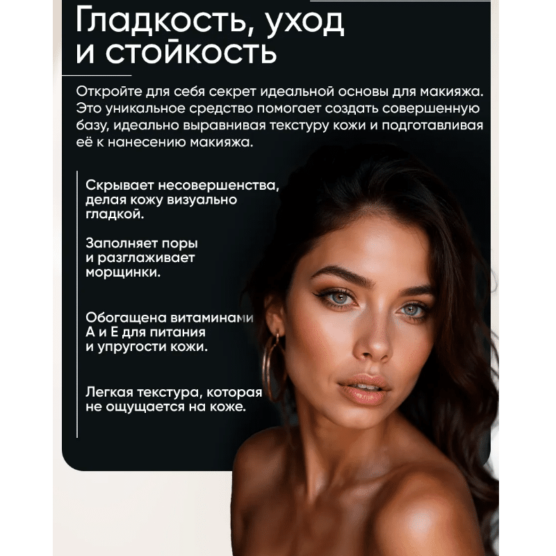 Благодаря невесомой текстуре база создает идеально гладкое покрытие и способствует более легкому распределению тональных средств, обеспечивая длительную стойкость макияжа.