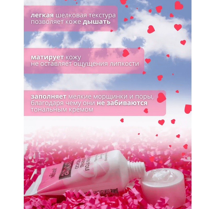 - заполняет мелкие морщинки и поры, благодаря чему они не забиваются тональным кремом;