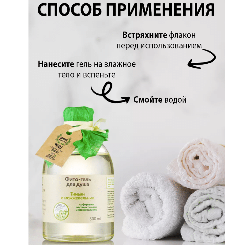 Фито-гель для душа Тимьян и можжевельник с эфирными маслами тимьяна и можжевельника OZ! OrganicZone