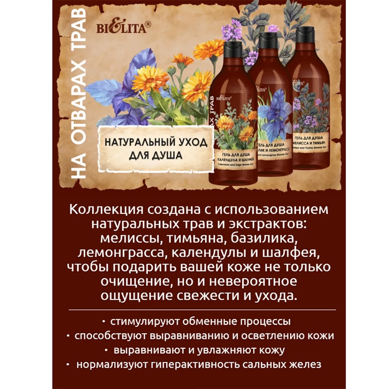 Гель для душа Базилик и лемонграсс На отварах трав New
