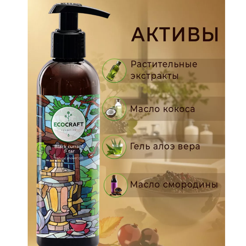Гель для душа Черная смородина и смола ECOCRAFT
