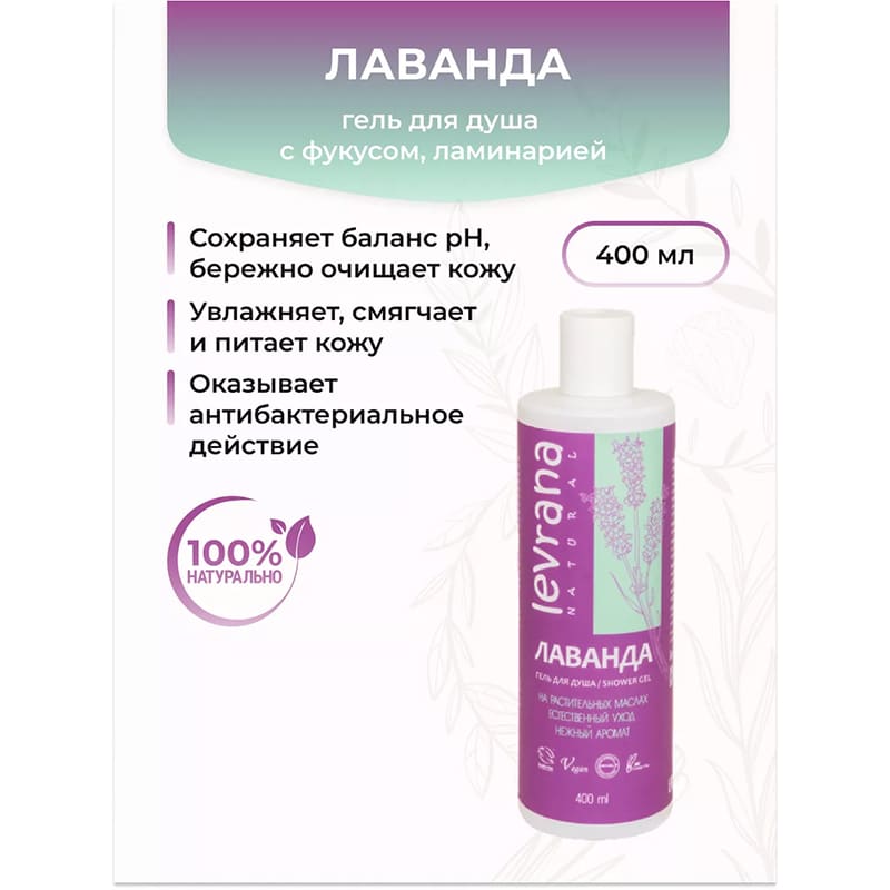 Гель для душа «Лаванда» на растительных маслах имеет мягкую текстуру и нежный аромат лаванды. Он поможет вашей коже отдохнуть и расслабиться.