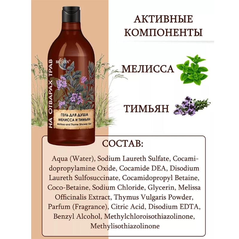 Гель для душа Мелисса и тимьян На отварах трав New