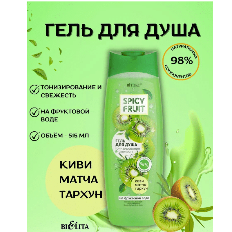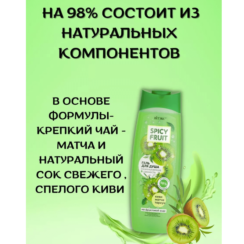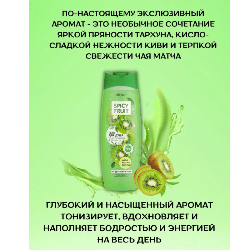 КИВИ-МАТЧА-ТАРХУН Гель для душа на фруктовой воде Тонизирование & Свежесть Spicy FRUIT